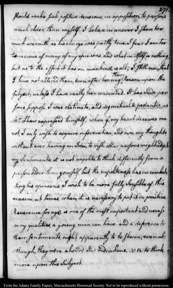 John Quincy Adams diary 10, 1 January 1785 - 30 June 1786, page 271