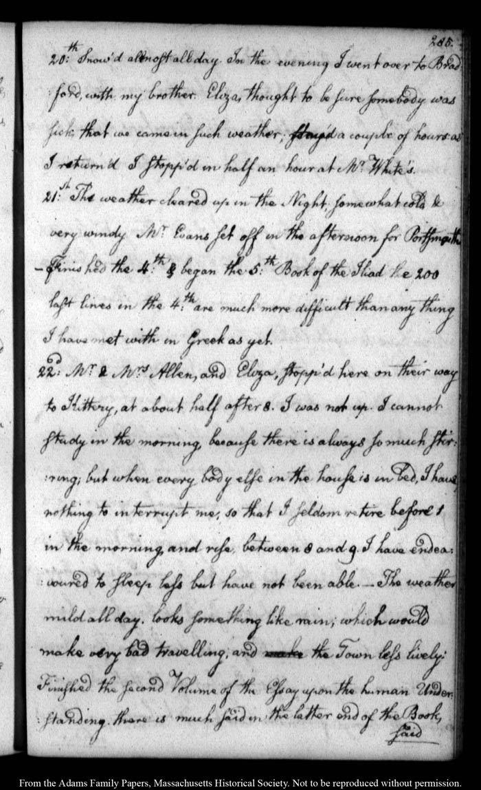John Quincy Adams diary 10, 1 January 1785 - 30 June 1786, page 285