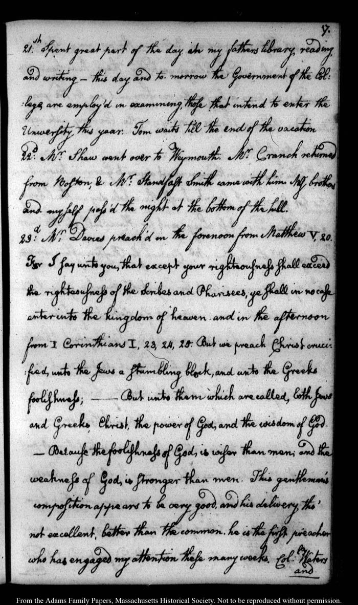 View full, authoritative transcriptions with page images of the diaries at John Quincy Adams Digital Diary part of the Primary Source Cooperative at the MHS.
