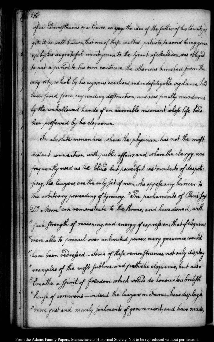 John Quincy Adams diary 11, 1 July 1786 - 31 October 1787, page 216