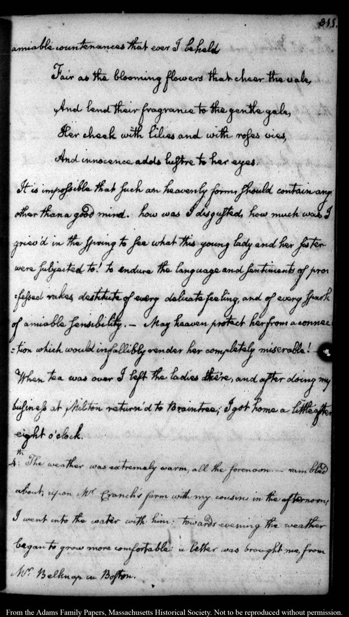 View full, authoritative transcriptions with page images of the diaries at John Quincy Adams Digital Diary part of the Primary Source Cooperative at the MHS.