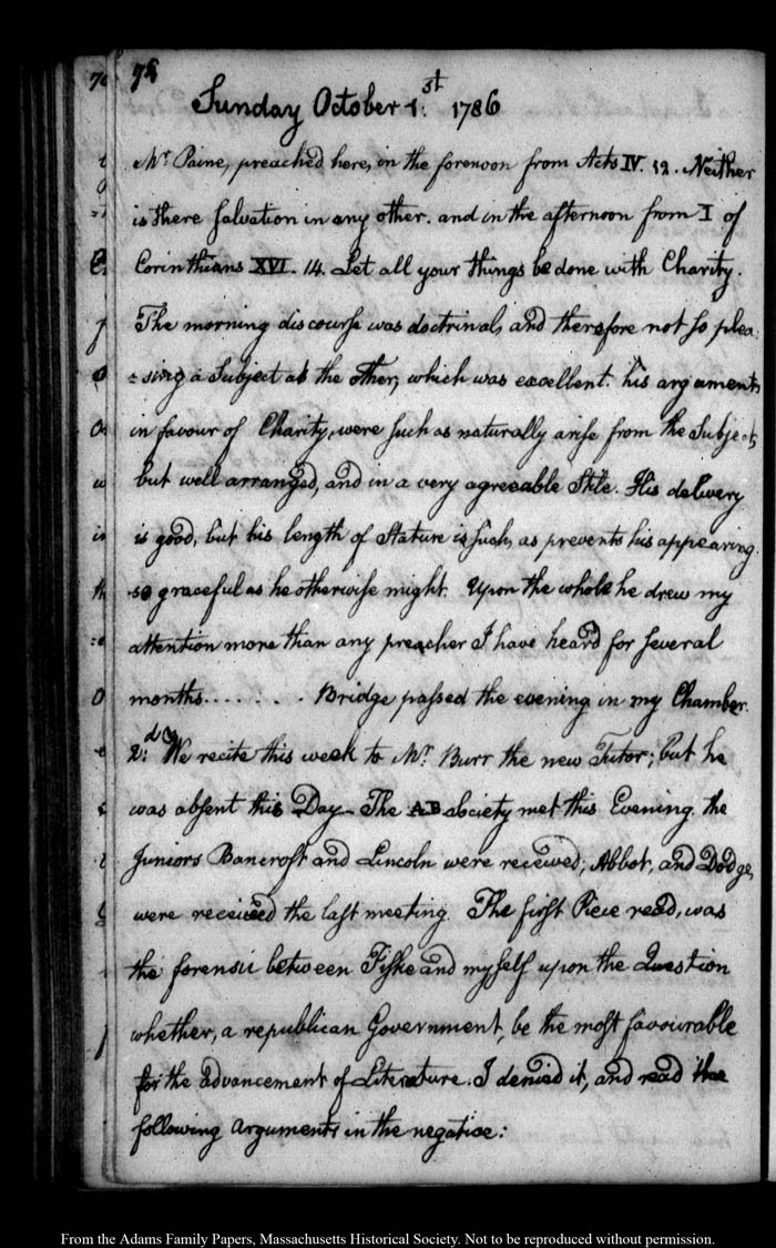 John Quincy Adams diary 11, 1 July 1786 - 31 October 1787, page 74