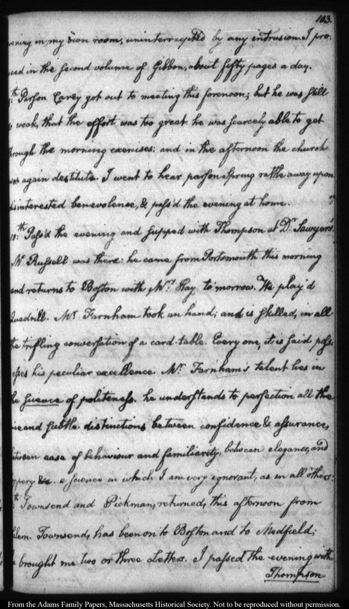 John Quincy Adams diary 12, 1 November 1787 - 17 September 1789 (with gaps); includes line-a-day entries 1 August 1788 - 31 December 1790, page 103