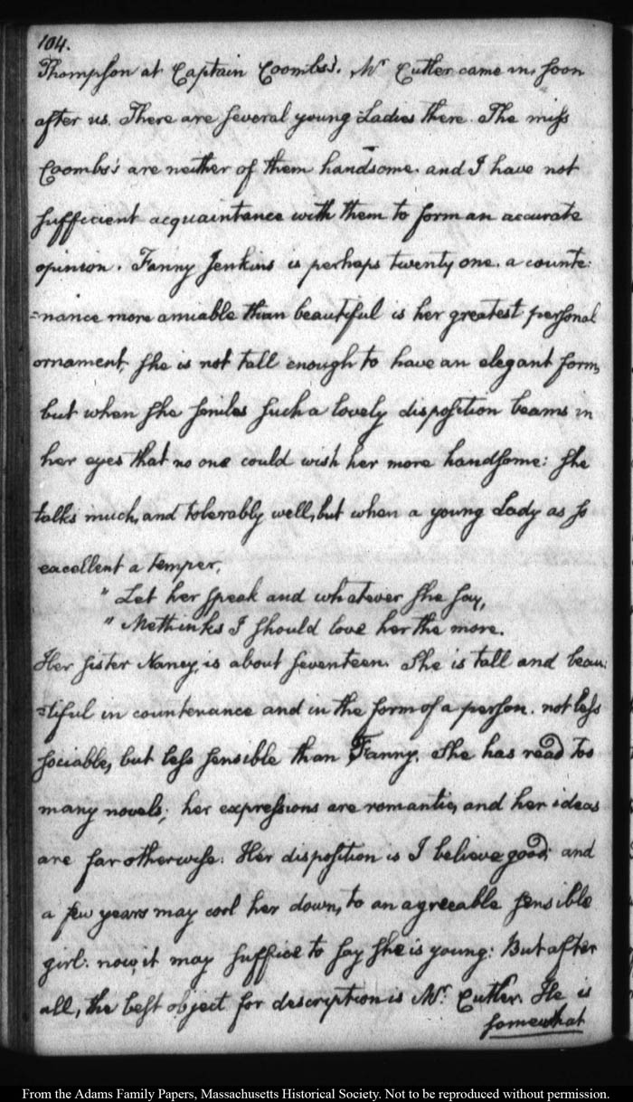 John Quincy Adams diary 12, 1 November 1787 - 17 September 1789 (with gaps); includes line-a-day entries 1 August 1788 - 31 December 1790, page 104