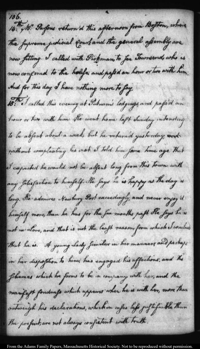 John Quincy Adams diary 12, 1 November 1787 - 17 September 1789 (with gaps); includes line-a-day entries 1 August 1788 - 31 December 1790, page 106