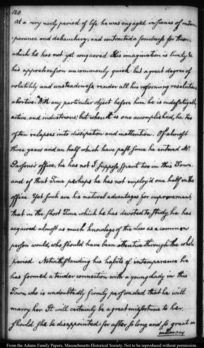 John Quincy Adams diary 12, 1 November 1787 - 17 September 1789 (with gaps); includes line-a-day entries 1 August 1788 - 31 December 1790, page 120