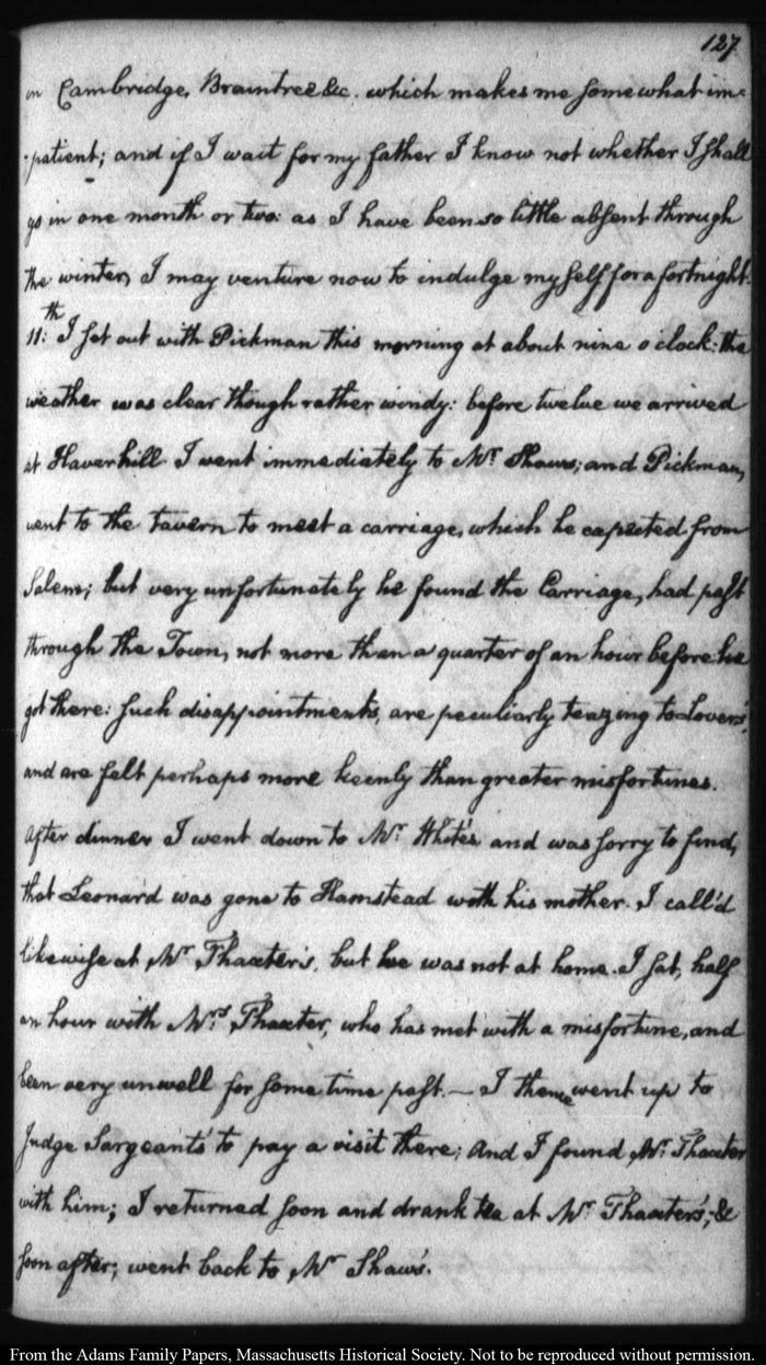 View full, authoritative transcriptions with page images of the diaries at John Quincy Adams Digital Diary part of the Primary Source Cooperative at the MHS.