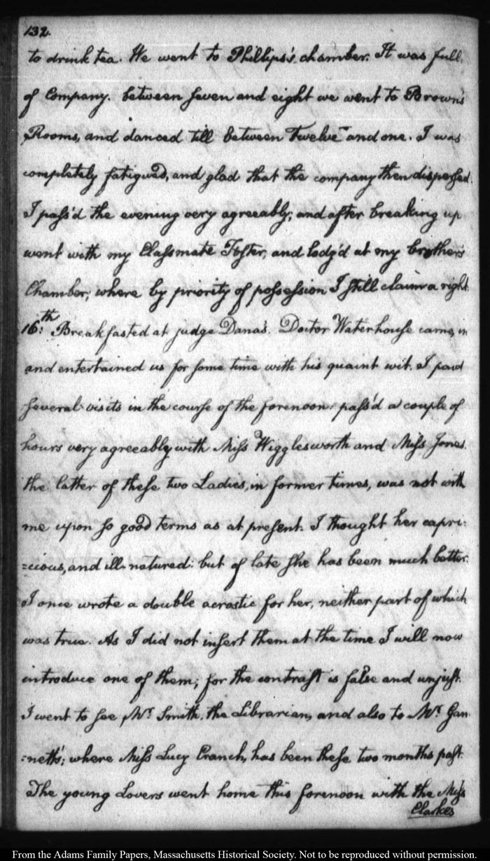 John Quincy Adams diary 12, 1 November 1787 - 17 September 1789 (with gaps); includes line-a-day entries 1 August 1788 - 31 December 1790, page 132