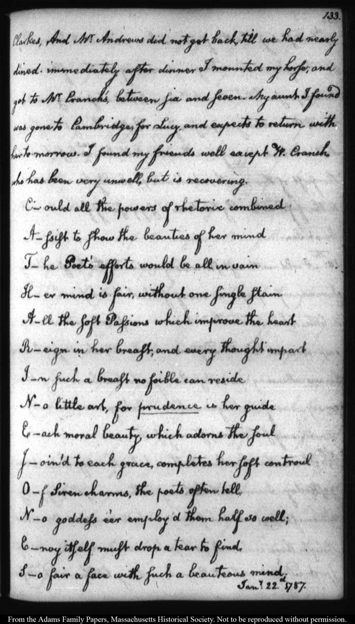 John Quincy Adams diary 12, 1 November 1787 - 17 September 1789 (with gaps); includes line-a-day entries 1 August 1788 - 31 December 1790, page 133