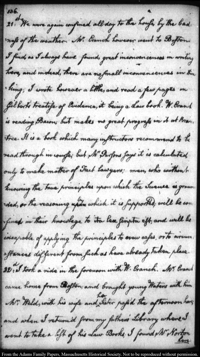 John Quincy Adams diary 12, 1 November 1787 - 17 September 1789 (with gaps); includes line-a-day entries 1 August 1788 - 31 December 1790, page 136