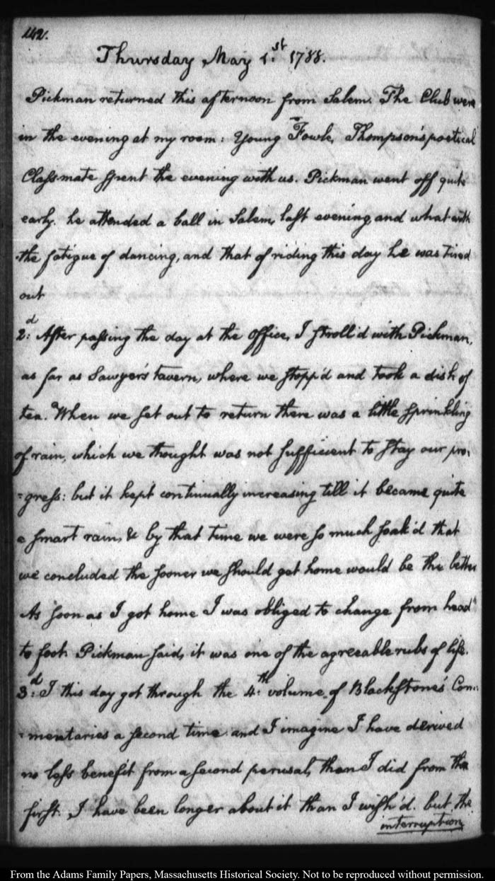 John Quincy Adams diary 12, 1 November 1787 - 17 September 1789 (with gaps); includes line-a-day entries 1 August 1788 - 31 December 1790, page 142