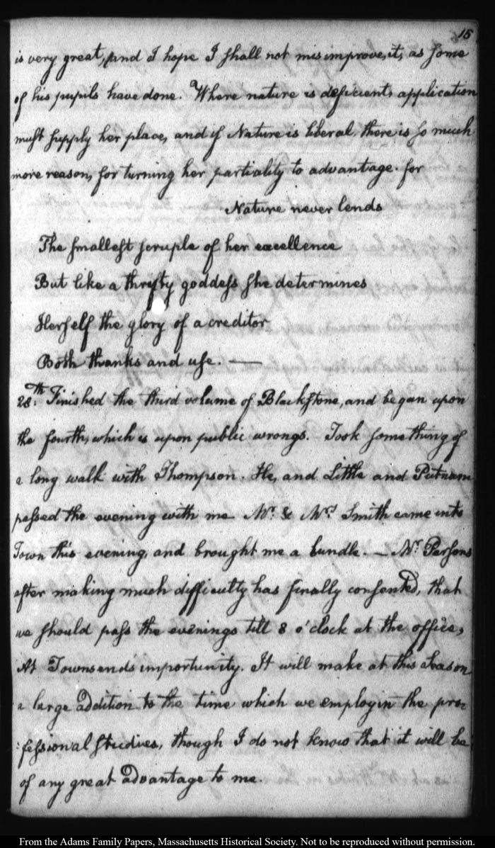 John Quincy Adams diary 12, 1 November 1787 - 17 September 1789 (with gaps); includes line-a-day entries 1 August 1788 - 31 December 1790, page 15