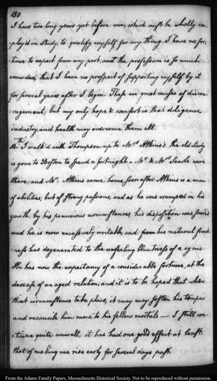 John Quincy Adams diary 12, 1 November 1787 - 17 September 1789 (with gaps); includes line-a-day entries 1 August 1788 - 31 December 1790, page 150