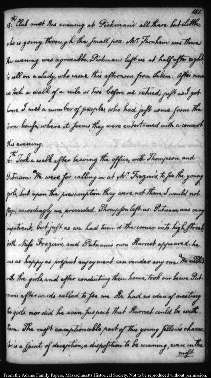 John Quincy Adams diary 12, 1 November 1787 - 17 September 1789 (with gaps); includes line-a-day entries 1 August 1788 - 31 December 1790, page 151