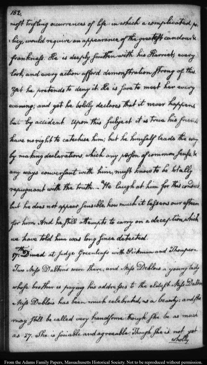 John Quincy Adams diary 12, 1 November 1787 - 17 September 1789 (with gaps); includes line-a-day entries 1 August 1788 - 31 December 1790, page 152