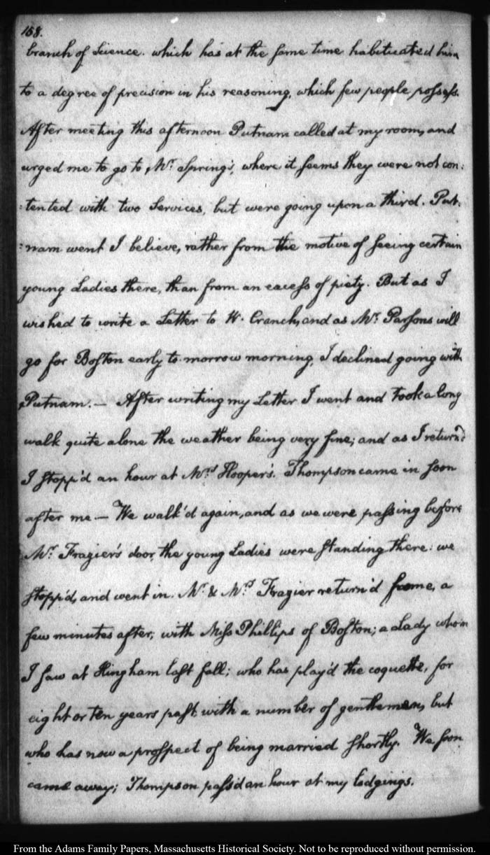 John Quincy Adams diary 12, 1 November 1787 - 17 September 1789 (with gaps); includes line-a-day entries 1 August 1788 - 31 December 1790, page 158