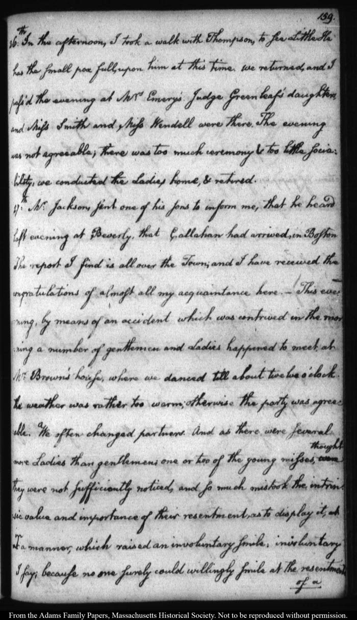 John Quincy Adams diary 12, 1 November 1787 - 17 September 1789 (with gaps); includes line-a-day entries 1 August 1788 - 31 December 1790, page 159