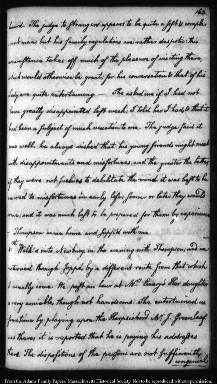 John Quincy Adams diary 12, 1 November 1787 - 17 September 1789 (with gaps); includes line-a-day entries 1 August 1788 - 31 December 1790, page 163