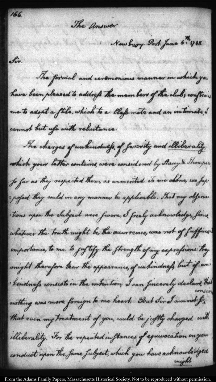 John Quincy Adams diary 12, 1 November 1787 - 17 September 1789 (with gaps); includes line-a-day entries 1 August 1788 - 31 December 1790, page 166