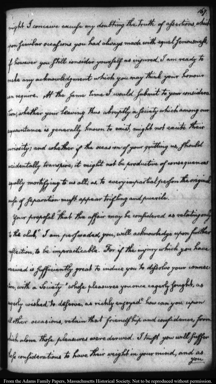 John Quincy Adams diary 12, 1 November 1787 - 17 September 1789 (with gaps); includes line-a-day entries 1 August 1788 - 31 December 1790, page 167