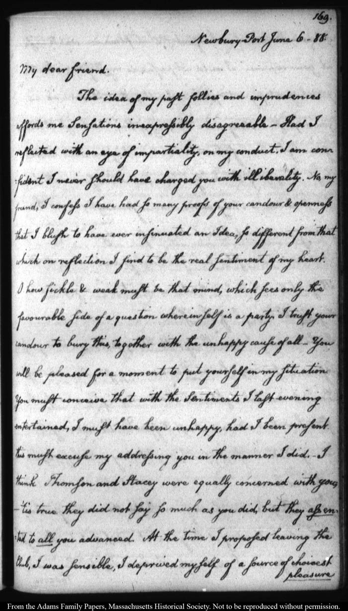 John Quincy Adams diary 12, 1 November 1787 - 17 September 1789 (with gaps); includes line-a-day entries 1 August 1788 - 31 December 1790, page 169