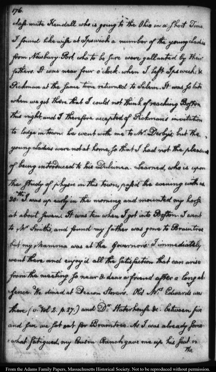 John Quincy Adams diary 12, 1 November 1787 - 17 September 1789 (with gaps); includes line-a-day entries 1 August 1788 - 31 December 1790, page 176