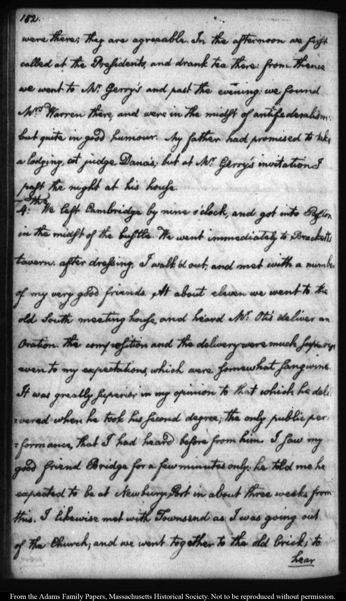 John Quincy Adams diary 12, 1 November 1787 - 17 September 1789 (with gaps); includes line-a-day entries 1 August 1788 - 31 December 1790, page 182