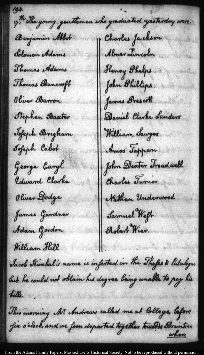 John Quincy Adams diary 12, 1 November 1787 - 17 September 1789 (with gaps); includes line-a-day entries 1 August 1788 - 31 December 1790, page 194