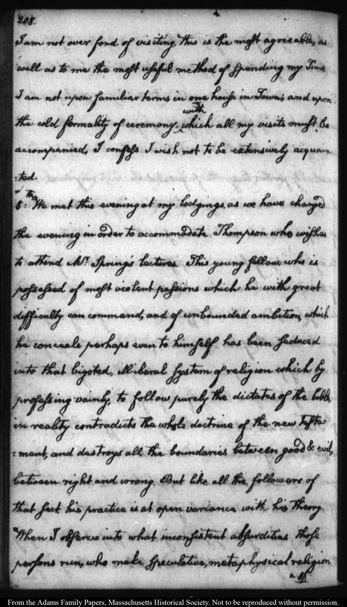 John Quincy Adams diary 12, 1 November 1787 - 17 September 1789 (with gaps); includes line-a-day entries 1 August 1788 - 31 December 1790, page 208