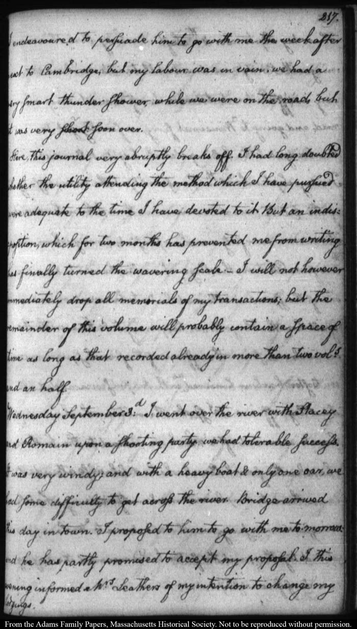 John Quincy Adams diary 12, 1 November 1787 - 17 September 1789 (with gaps); includes line-a-day entries 1 August 1788 - 31 December 1790, page 217