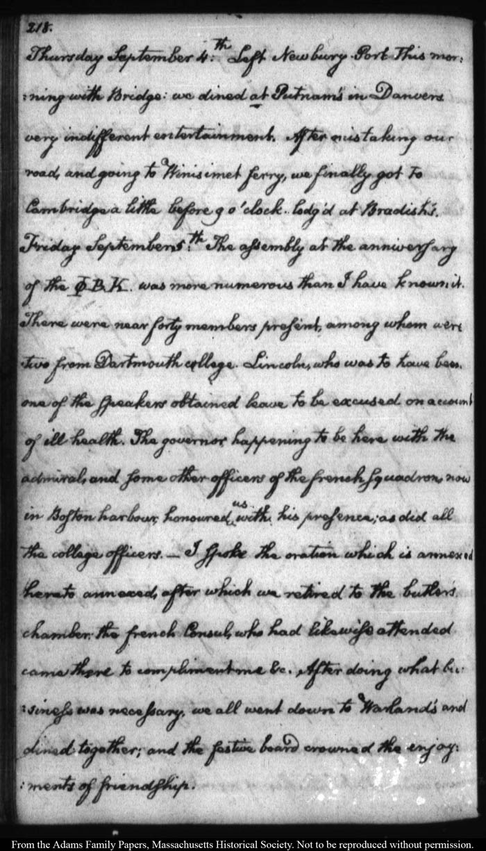 John Quincy Adams diary 12, 1 November 1787 - 17 September 1789 (with gaps); includes line-a-day entries 1 August 1788 - 31 December 1790, page 218