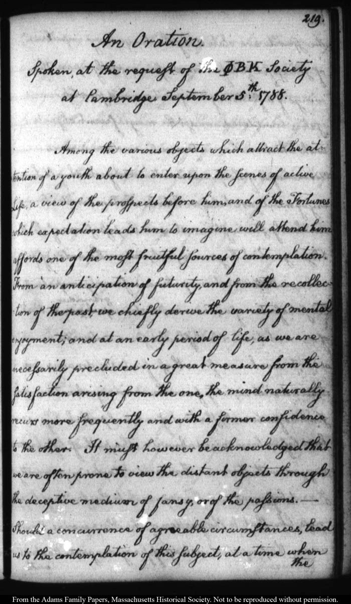 John Quincy Adams diary 12, 1 November 1787 - 17 September 1789 (with gaps); includes line-a-day entries 1 August 1788 - 31 December 1790, page 219