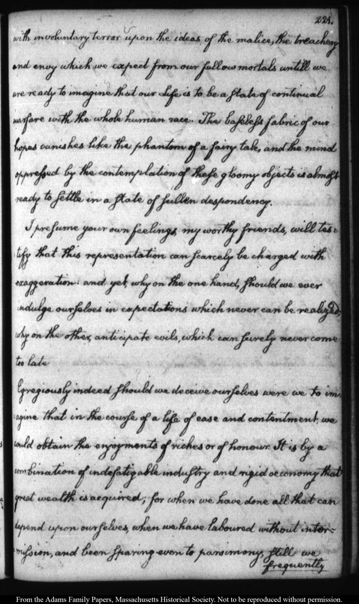 John Quincy Adams diary 12, 1 November 1787 - 17 September 1789 (with gaps); includes line-a-day entries 1 August 1788 - 31 December 1790, page 221
