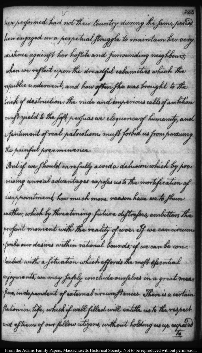 John Quincy Adams diary 12, 1 November 1787 - 17 September 1789 (with gaps); includes line-a-day entries 1 August 1788 - 31 December 1790, page 223