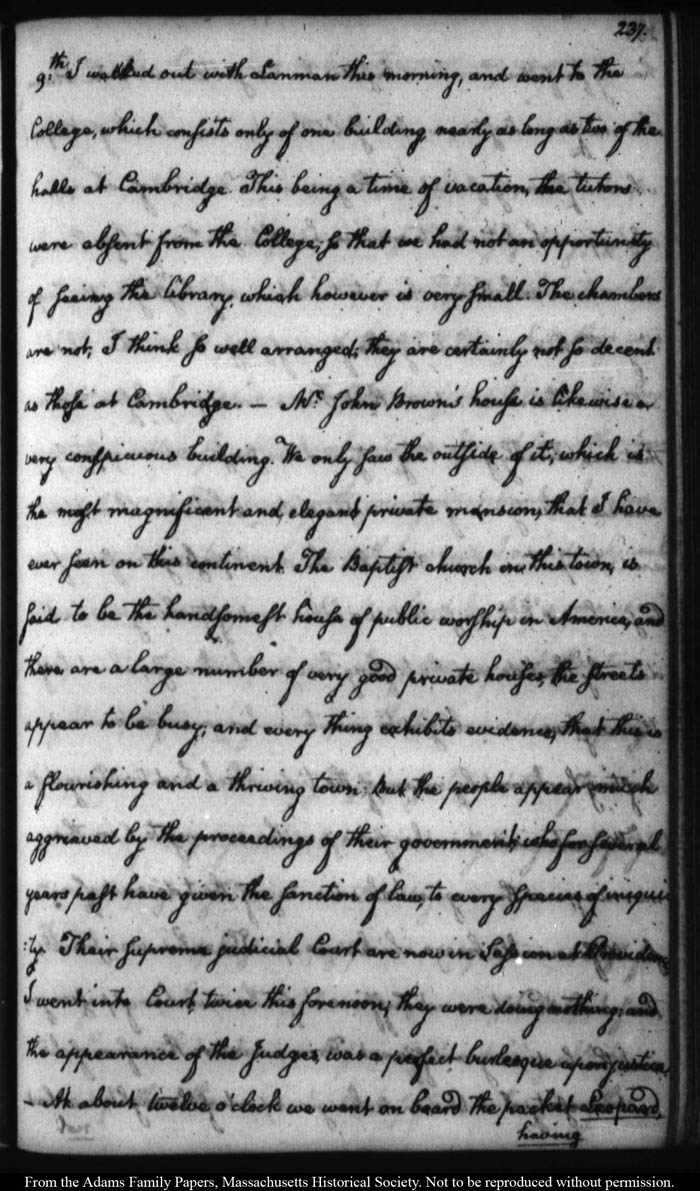 John Quincy Adams diary 12, 1 November 1787 - 17 September 1789 (with gaps); includes line-a-day entries 1 August 1788 - 31 December 1790, page 237
