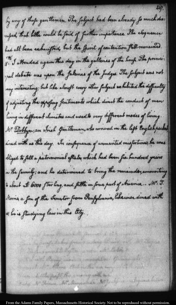 John Quincy Adams diary 12, 1 November 1787 - 17 September 1789 (with gaps); includes line-a-day entries 1 August 1788 - 31 December 1790, page 247
