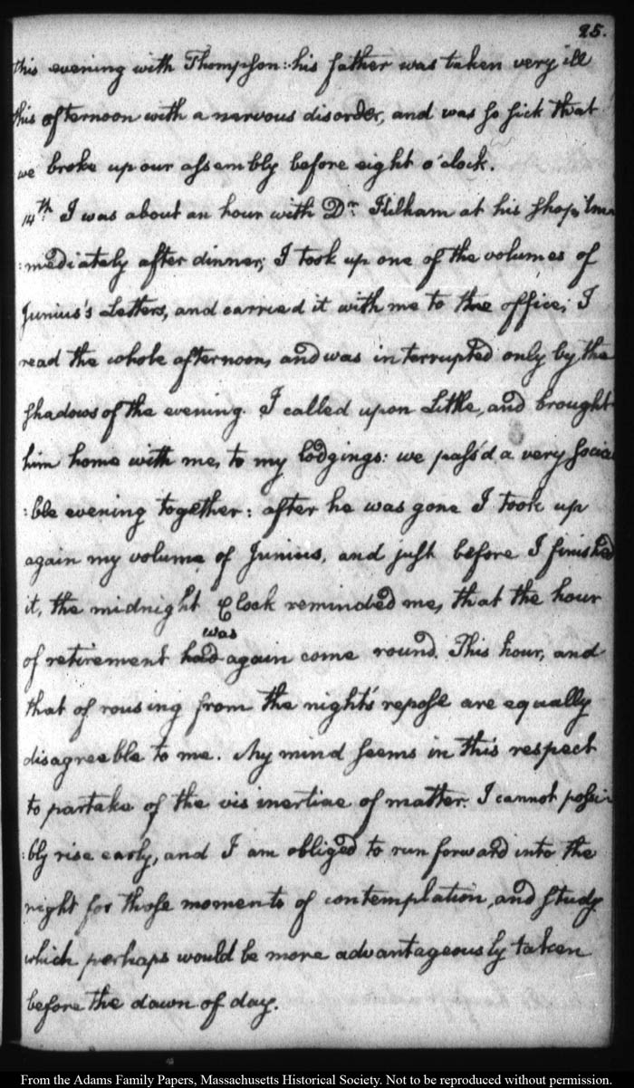 John Quincy Adams diary 12, 1 November 1787 - 17 September 1789 (with gaps); includes line-a-day entries 1 August 1788 - 31 December 1790, page 25