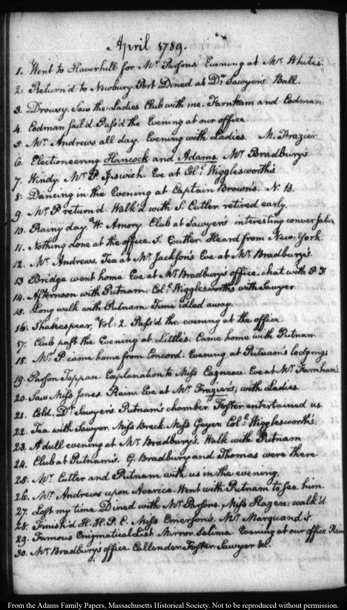 This is our legacy JQA diaries website and allows researchers to view the physical diaries page-by-page.