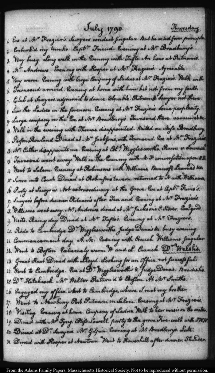 This is our legacy JQA diaries website and allows researchers to view the physical diaries page-by-page.