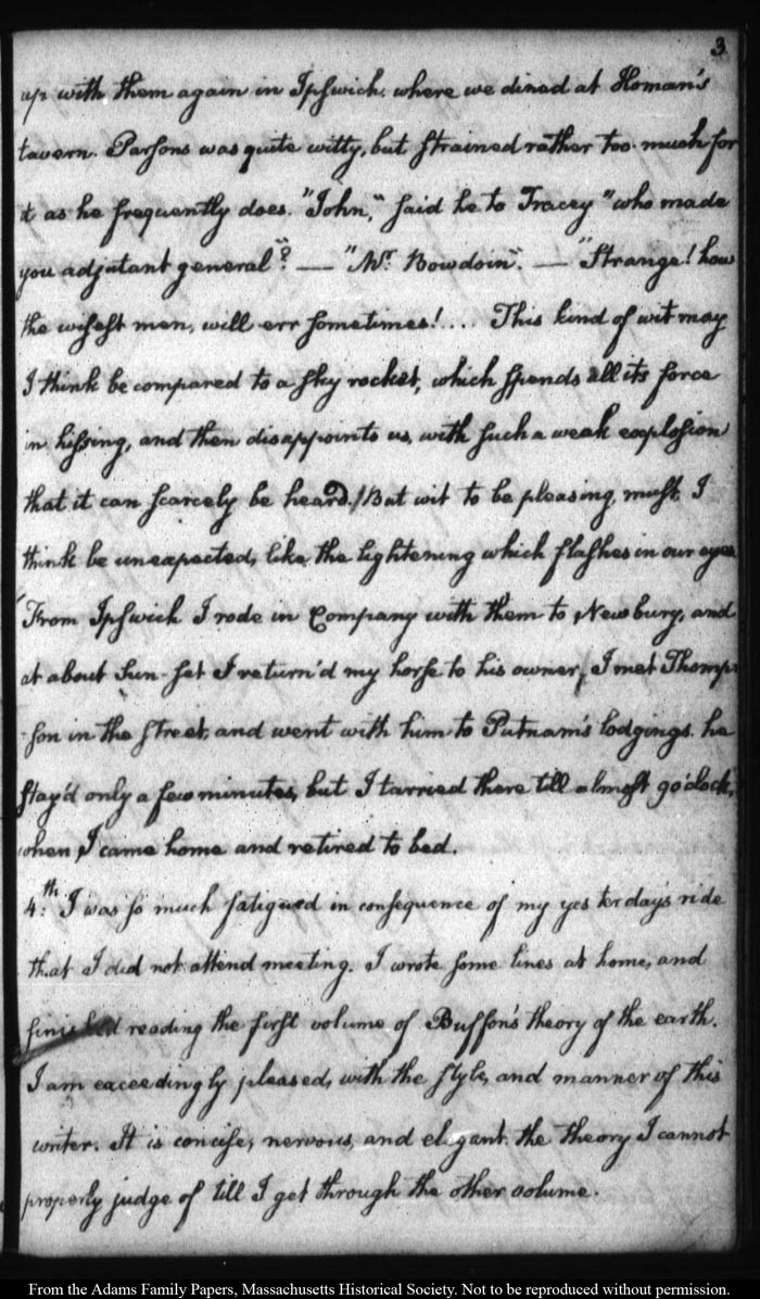 John Quincy Adams diary 12, 1 November 1787 - 17 September 1789 (with gaps); includes line-a-day entries 1 August 1788 - 31 December 1790, page 3