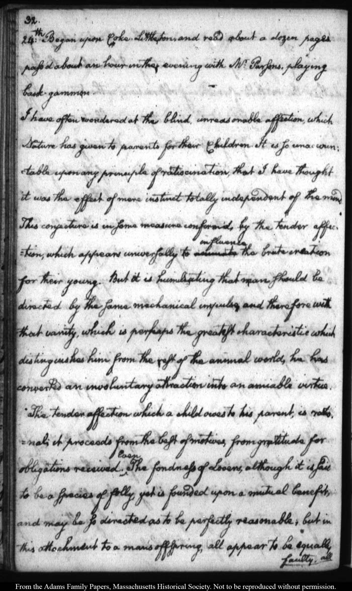 John Quincy Adams diary 12, 1 November 1787 - 17 September 1789 (with gaps); includes line-a-day entries 1 August 1788 - 31 December 1790, page 32