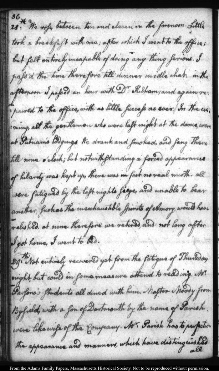 John Quincy Adams diary 12, 1 November 1787 - 17 September 1789 (with gaps); includes line-a-day entries 1 August 1788 - 31 December 1790, page 36