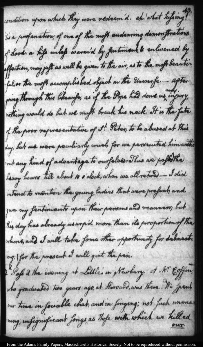 John Quincy Adams diary 12, 1 November 1787 - 17 September 1789 (with gaps); includes line-a-day entries 1 August 1788 - 31 December 1790, page 43