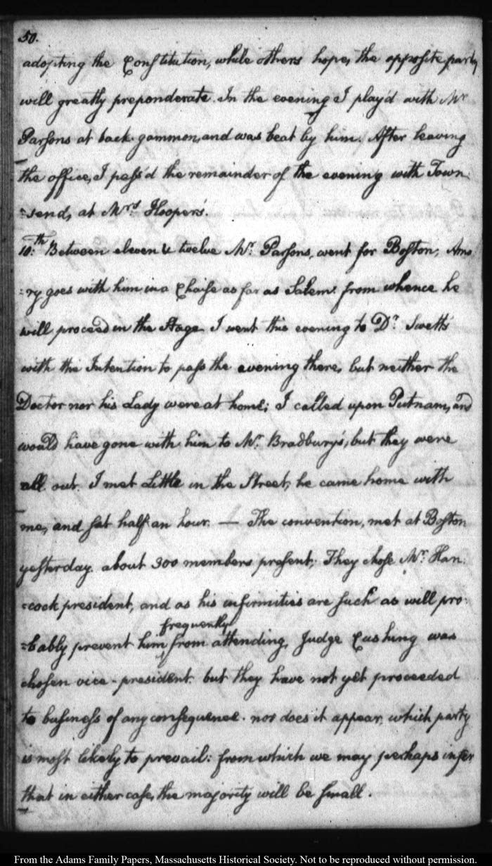 John Quincy Adams diary 12, 1 November 1787 - 17 September 1789 (with gaps); includes line-a-day entries 1 August 1788 - 31 December 1790, page 50