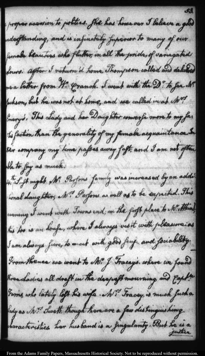 John Quincy Adams diary 12, 1 November 1787 - 17 September 1789 (with gaps); includes line-a-day entries 1 August 1788 - 31 December 1790, page 53