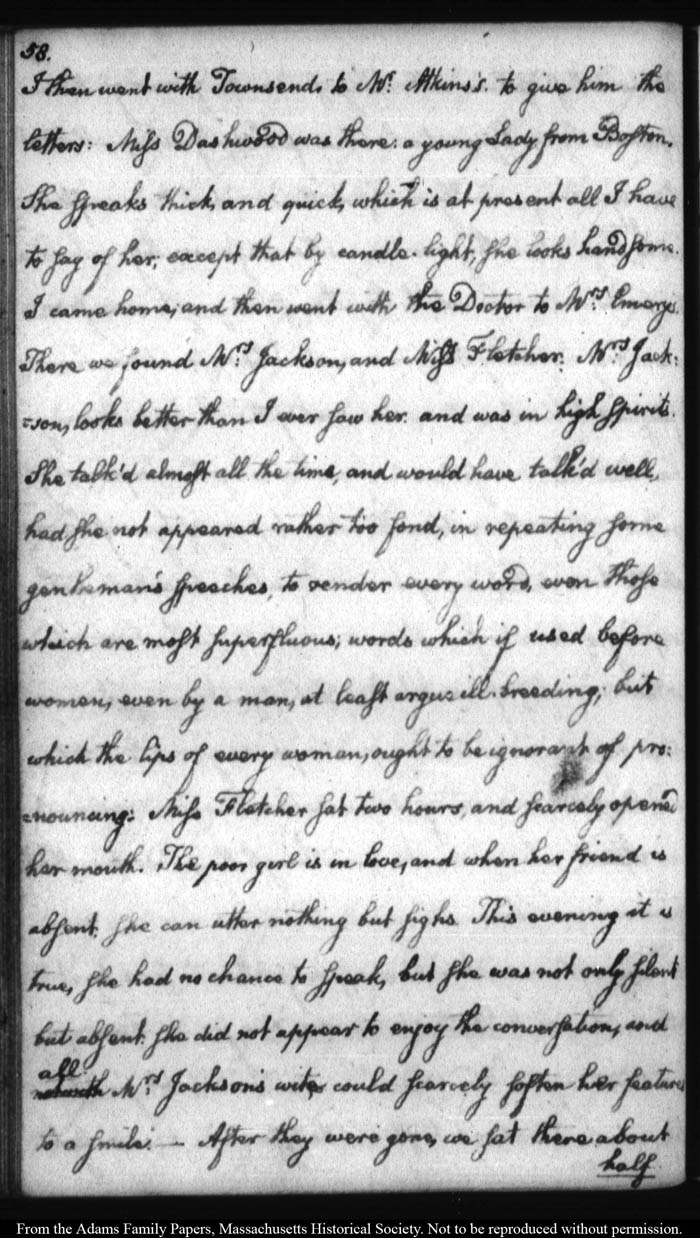John Quincy Adams diary 12, 1 November 1787 - 17 September 1789 (with gaps); includes line-a-day entries 1 August 1788 - 31 December 1790, page 58
