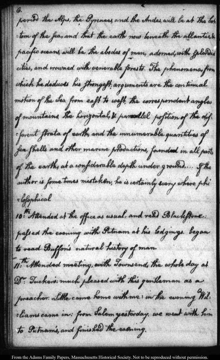 John Quincy Adams diary 12, 1 November 1787 - 17 September 1789 (with gaps); includes line-a-day entries 1 August 1788 - 31 December 1790, page 6