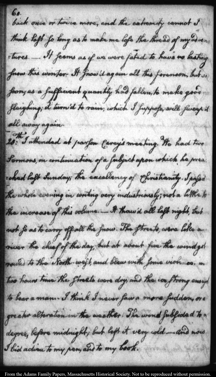 John Quincy Adams diary 12, 1 November 1787 - 17 September 1789 (with gaps); includes line-a-day entries 1 August 1788 - 31 December 1790, page 60
