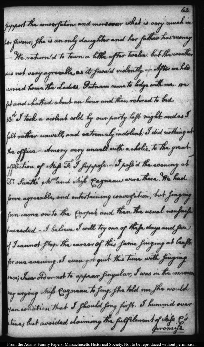John Quincy Adams diary 12, 1 November 1787 - 17 September 1789 (with gaps); includes line-a-day entries 1 August 1788 - 31 December 1790, page 63