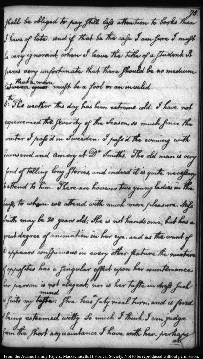 John Quincy Adams diary 12, 1 November 1787 - 17 September 1789 (with gaps); includes line-a-day entries 1 August 1788 - 31 December 1790, page 75